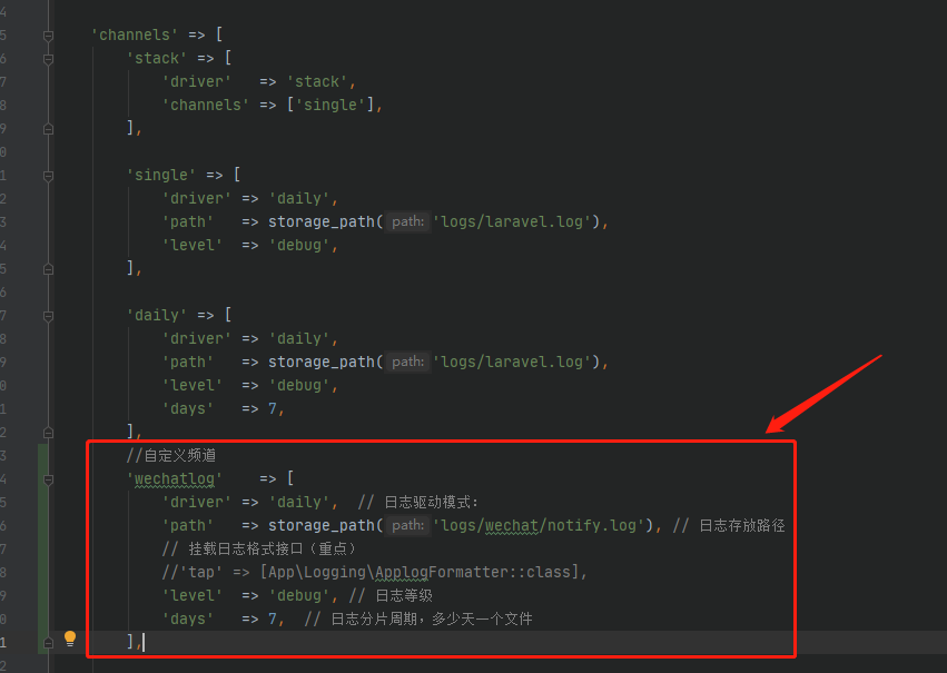 1) 日志的配置文件:config/logging.php