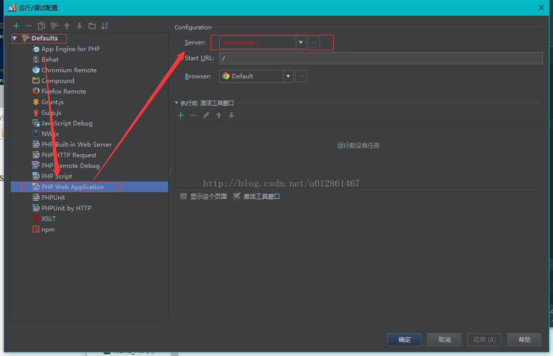 展开 Default -> PHP Web Application,现在是<no server>状态,如下图: