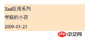 28 </xml>登录后复制代码说明:第一行是XML文件的头部声明,作为一个格式良好的Xml文档,都应该添加头部的声明信息。第二行是CSS样式的声明,其中,xml-stylesheet的意思是为XML文档添加样式表,type="text/css"的意思是样式表的类型是CSS样式表。第四行和第二十二行中间的内容则是CSS样式的内容,其中第四行用来声明添加CSS代码,第二十二行则是它的封闭标签。后面的几行是XML文档的内容。在添加了CSS样式之后,我们在IE中打开这个XML文档,效果如下图: