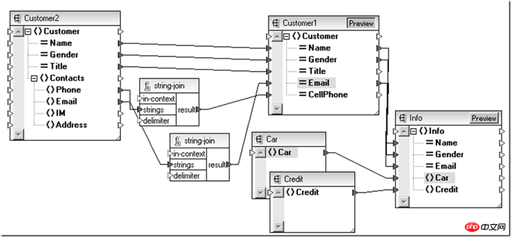如上,先把数据统一转换为XML,然后通过XML层次型优势,结合XML专用技术进行处理。