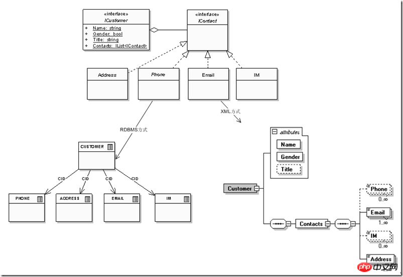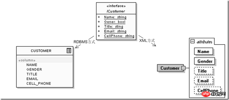例如,定义用户实体的时候,最初下面的信息就够了,其中ICustomer是应用会使用的用户接口,而CUSTOMER为关系数据库方式下的表示,<Customer>为XML方式:
