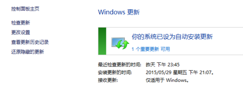 3、如果没有安装KB 3035583,请在"控制面板\系统和安全\Windows 更新"中检查并安装,安装后重新启动计算机。随后执行步骤2中的操作