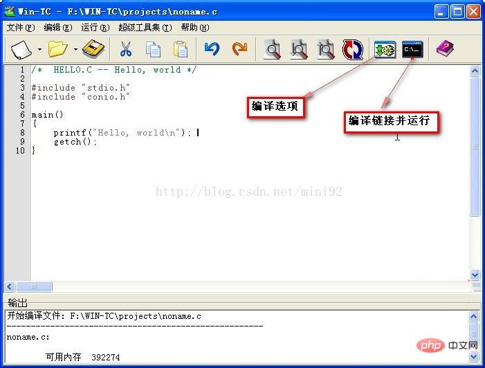 2、win-TC:在tc2.0的基础上加上了界面,能够使用鼠标,具有语法高亮,可以嵌入汇编等特点,对新手一些,拜托了不能用鼠标的困难。编写完源代码,进行编译运行即可,软件比较容易上手。