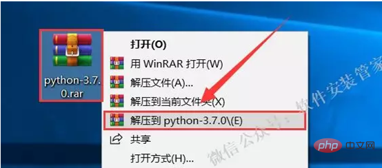 - 选中【python-3.7.0】压缩包,鼠标右击选择【解压到python-3.7.0】。