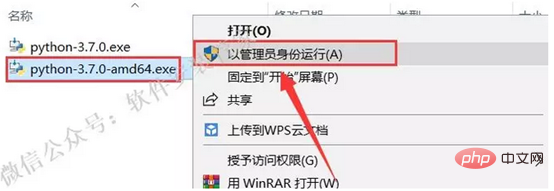 3.在桌面鼠标右击我的电脑选择属性查看自己的电脑位数,64位系统选中【python-3.7.0.amd64】(32位系统就选择上面的)然后鼠标右击选择【以管理员身份运行】。