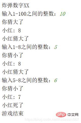 用input接受你猜的数,用if判断如果你猜的数大于炸弹就把你猜的数赋给炸弹上限end(更改炸弹上限),如果等于炸弹,游戏结束!如果小于炸弹,把你猜的值赋给炸弹下线start