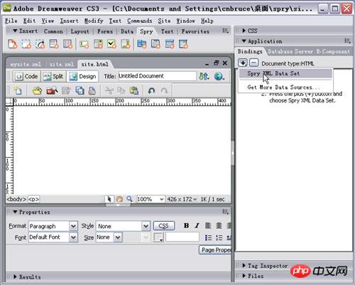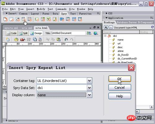 2,在Dreamweaver CS3中添加“Spry XML Date Set”
