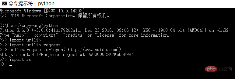 (1) urllib/re是python默认自带的库,可以通过以下命令进行验证: