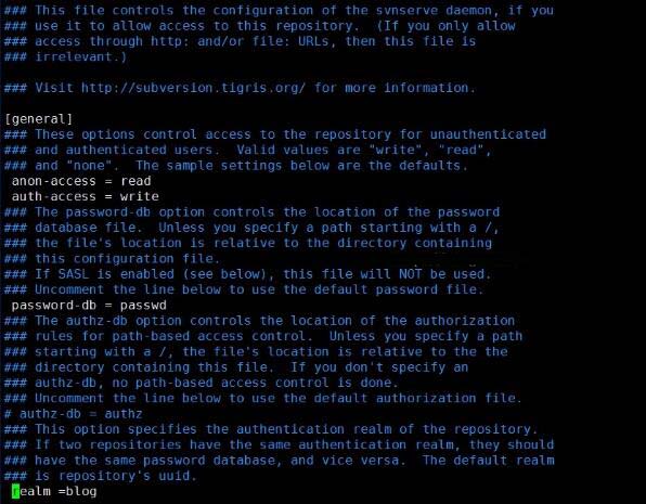 将项目文件提交至服务器svn时报错提示权限不够,此时设置svn 下blog中的conf配置: