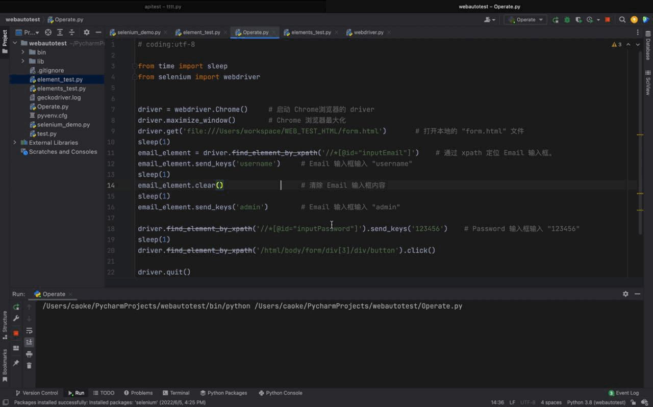 利用我们之前使用的本地 form.html 文件,练习一下元素的基本点击、输入、清除操作。