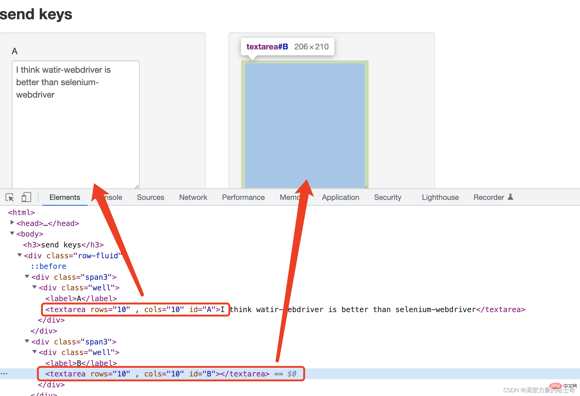 利用我们本地的 sendkeys.html 文件,实现鼠标键盘的模拟事件操作。sendkeys.html 文件的页面元素如下图: