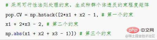 - 如果通过CV矩阵基于可行性法则进行约束的设置,那么 不等式约束需要 ≤,等式约束 需要传入abs( ) (因为遵循值越大,适应度越小的原则)