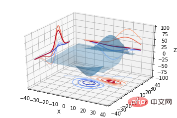 cset = ax.contour(X, Y, Z, zdir='x', offset=-40, cmap=cm.coolwarm)
