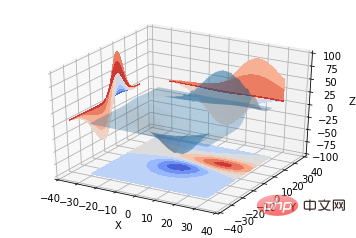 cset = ax.contourf(X, Y, Z, zdir='x', offset=-40, cmap=cm.coolwarm)