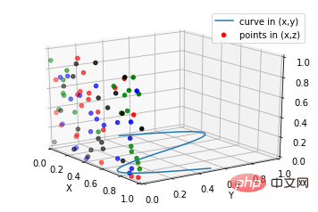 ax.scatter(x, y, zs=0, zdir='y', c=c_list, label='points in (x,z)')