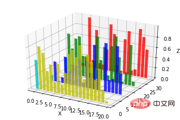 ax.bar(xs, ys, zs=z, zdir='y', color=cs, alpha=0.8)