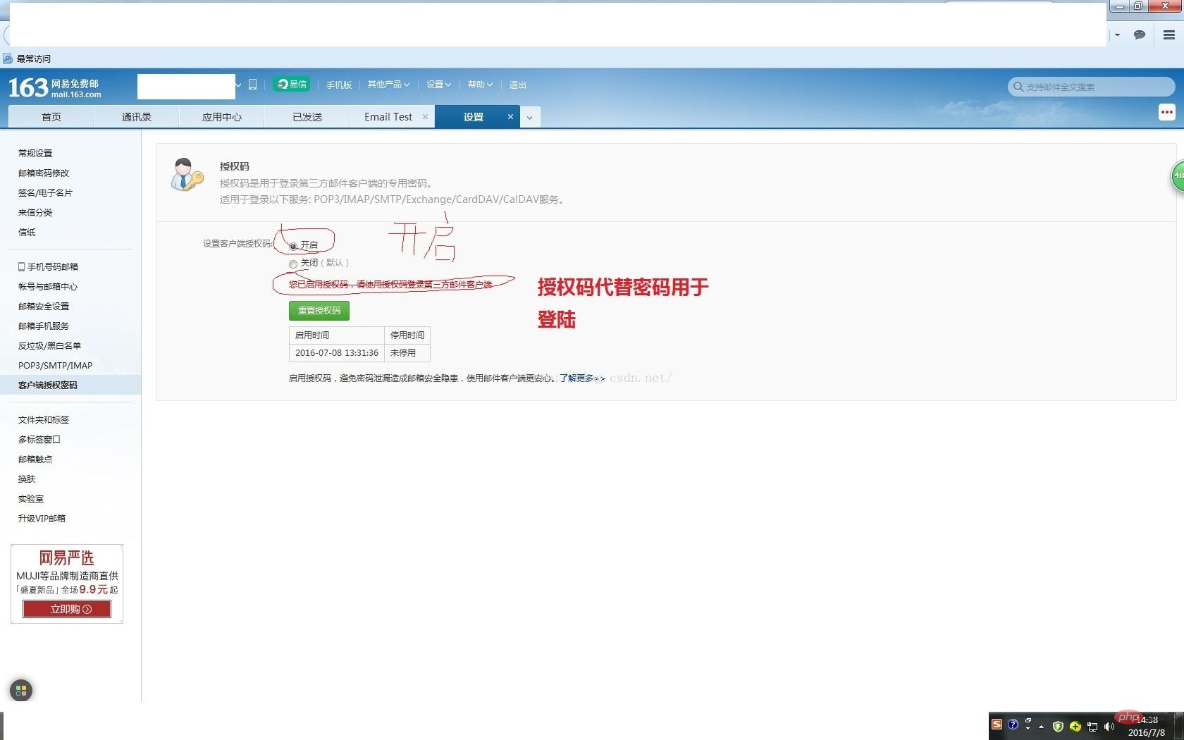 设置163邮箱授权码流程如图: