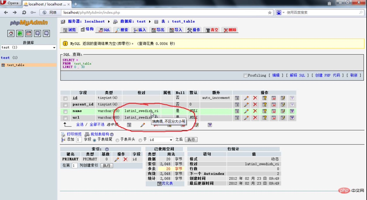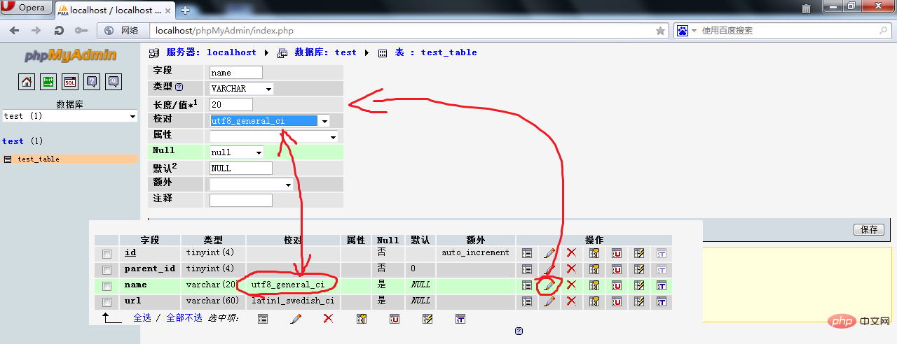 点击修改把字符编码改为utf8_general_ci