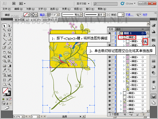 (15)参照以上方法,将所选图形编组、删除裁切标记并锁定。