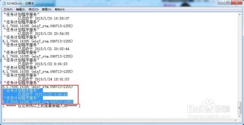 当我们双击打开SCEDULE记事本文件就可以看到许许多多的的时间,任务计划程序等。(PS:开机时间就是任务计划程序启动时间)我个人比较喜欢把这个记事本以快捷方式的形式存在桌面某个隐藏文件夹,这样别人既找不到,我自己还能轻松快捷打开查阅。