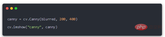 接着用Canny边缘检测到得到一个包含“窄边界”的二值图像。所谓二值图像就是黑白图,只有黑色和白色。