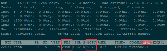 wf.write('Runtime : {}'.format(time.time()-now))登录后复制程序在执行过程中,内存占用一直处在 240M左右