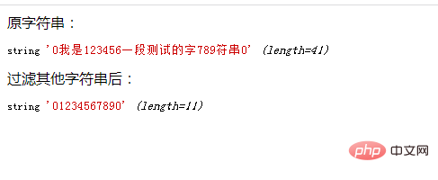 preg_replace("/[^0-9]/", "", $str)的意思为匹配除了0~9间的数字以外的字符,并将这些字符替换为空字符,即删除这些字符即可。那么就只剩下数字字符了,因此输出结果为: