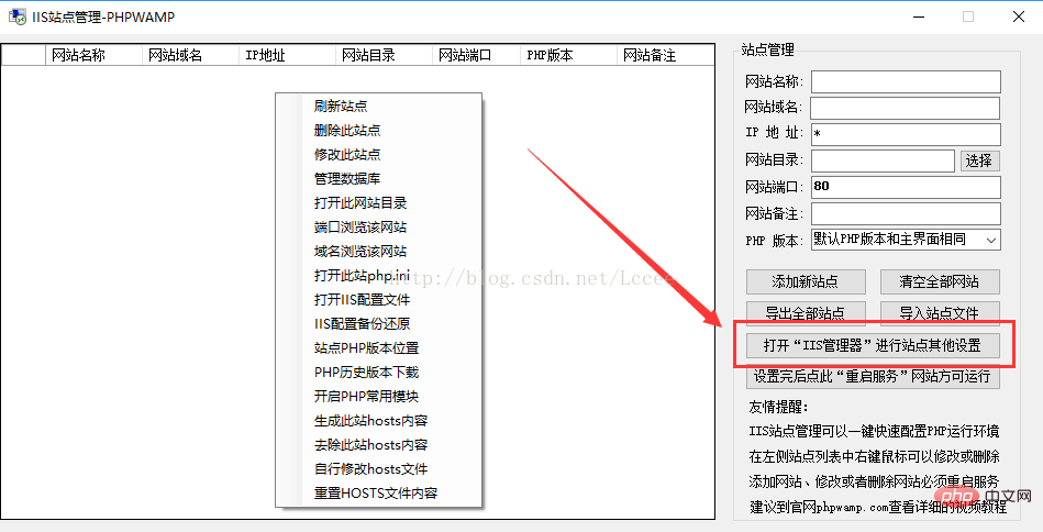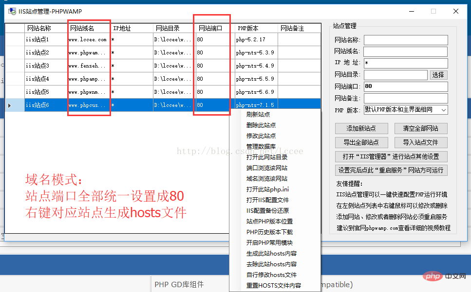 IIS站点管理“域名模式”使用方式,如图(域名模式添加站点后请右键对应站点生成hosts)