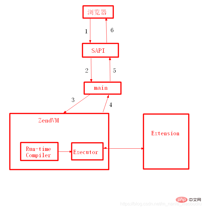 (2)编译器负责将PHP解释为执行器可识别的指令,执行器负责执行编译器解释出的指令。