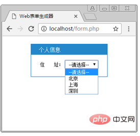 'option' => ['' => '--请选择--', 'BJ'=>'北京', 'SH'=>'上海', 'SZ'=>'深圳']