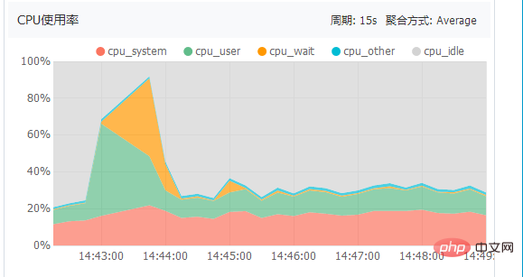 严重时会导致较高的 cup-wait 较高 内存不够用了 直接写磁盘 磁盘io直线增加 。cpu使用率也开始爆满。(如图所示)