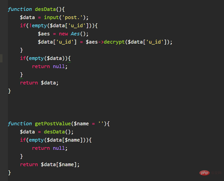 然后我们在comment文件设置这俩个方法,这俩个方法是对参数进行统一处理,那么我么那就在这里判断一下,凡是用到用户id的接口把用户id进行解密即可