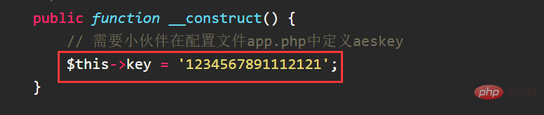 }登录后复制这是一个aes的工具类。注意一下,这个值需要我们来自改,而且是16位