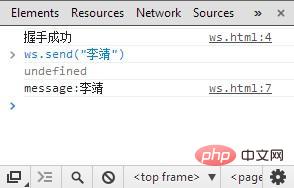 ws.send("李靖");登录后复制在连通之后发送数据,服务器原样返回: