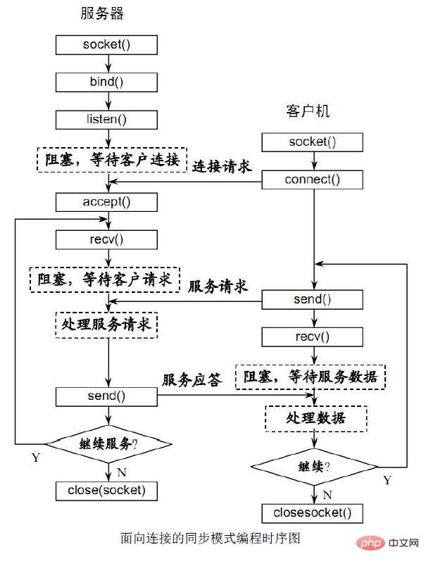 关于 socket 套接字的建立,相信很多大学修过计算机网络的人都知道了,下面是一张连接建立的过程: