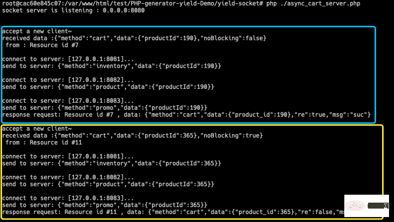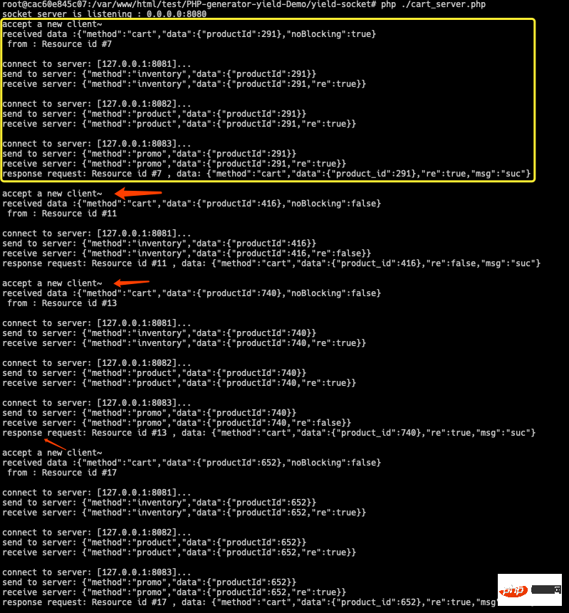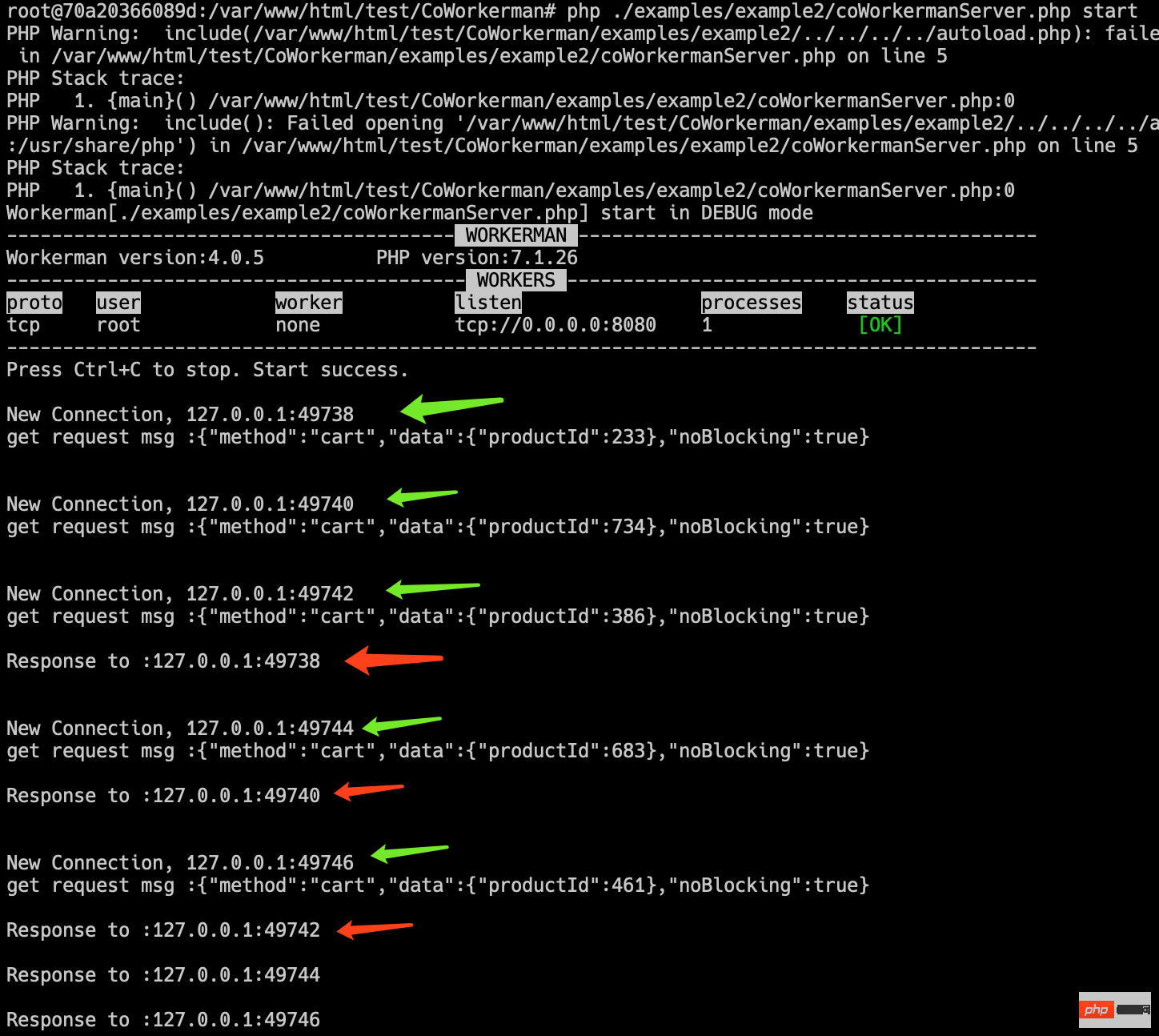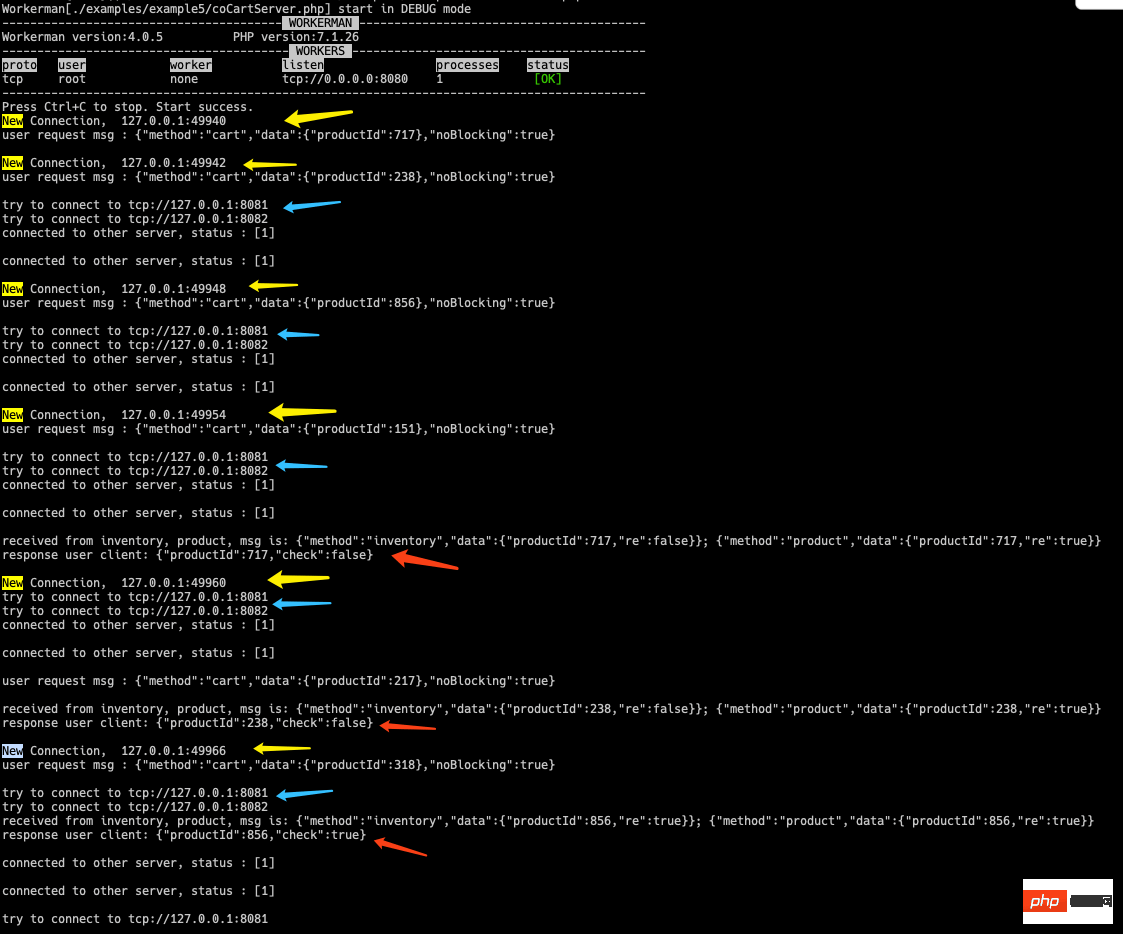 登录后复制## 启动CoWorker 购物车服务$ php ./examples/example5/coCartServer.php start