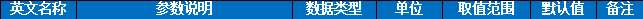 | 英文名称 | 参数说明 | 数据类型 | 单位 | 取值范围 | 默认值 | 备注 |
