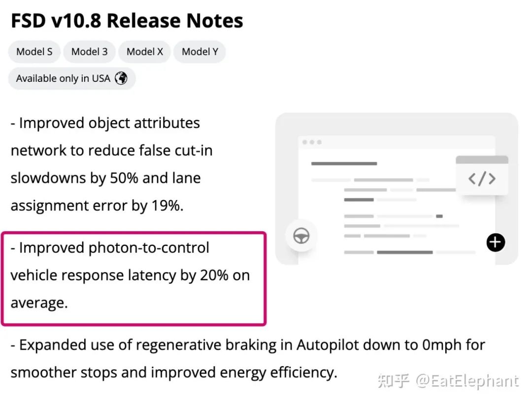 这一切最初听起来有点科幻,但是在Tesla FSD的正式Release Note上找到photon-to-control的相关更新内容无疑证明了这就是Tesla已经应用在其产品功能中的技术。当然可以想像这样的photon原始数据可能很难用传统方法进行标注,因此短时间内可能还不能完全取代ISP,但是Tesla在这些前沿方向的尝试对于行业里其他从业者也能起到巨大的启发作用。