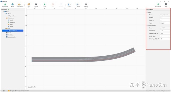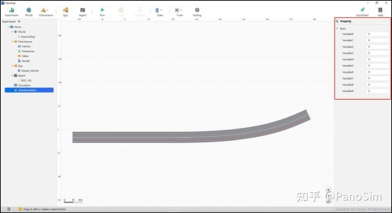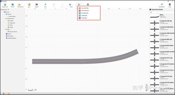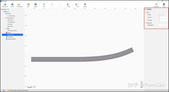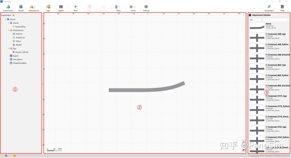 区域③:实验数据库,显示当前 PanoSim 中已包含的实验文件。用户可以选中实验文 件并长按鼠标左键拖动到区域②中加载实验文件。