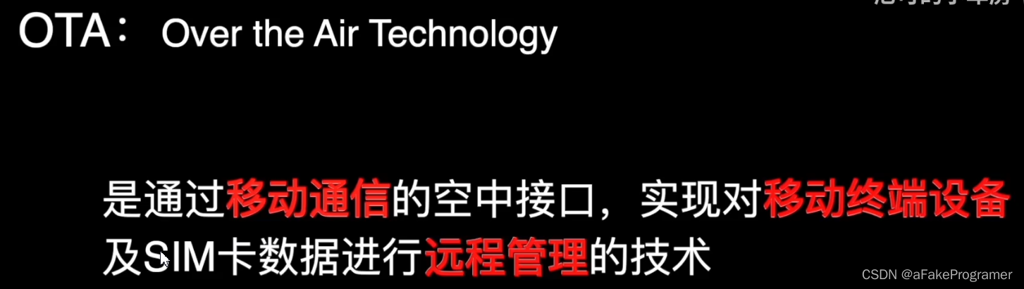 OTA,Over-the-Air Technology,空中下载技术,或者说是一个标准。所谓“空中”指的是远程无线方式,即通过无线网络下载数据包从而对系统进行升级的方式。其实这个概念在手机行业由来已久,现在它不仅普遍应用于各种IT设备,而且还延伸到了智能汽车领域。严格来说,OTA又分为两种类型,FOTA和SOTA: