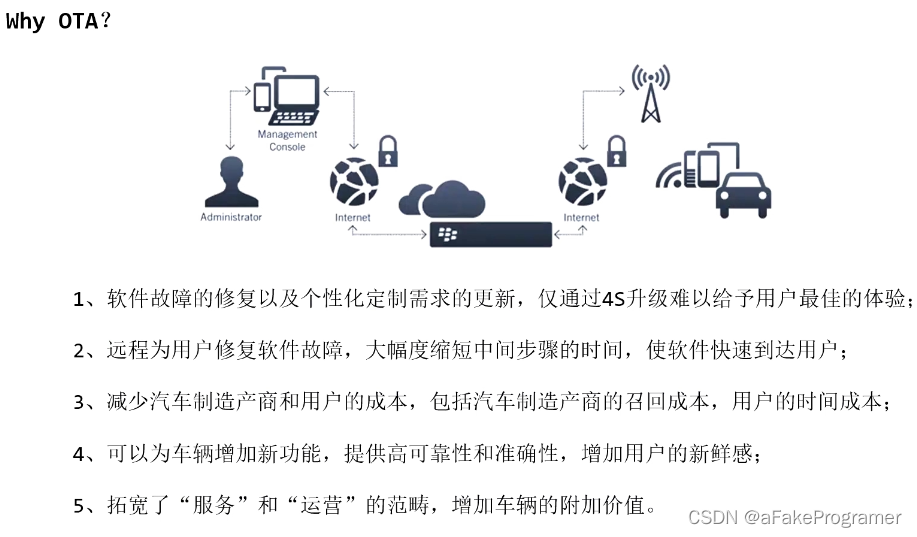 先说一下FOTA(Firmware-over-the-air,固件在线升级),它指的是给汽车下载一个完整的固件镜像或者修补现有的固件。