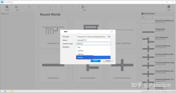 PanoSim可以支持停车场搭建,支持平行、垂向、斜向停车位的构建,为AP/AVP仿真测试提供基础。这里以AP为例,选择法规ISO16787-2017中双边界车辆垂直车位泊车场景。