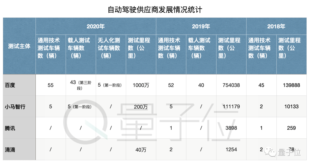 所以公平起见,不妨比较一下国内几家主要自动驾驶供应商的数据(截止2020年):
