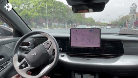 一路参照汽车的中控大屏显示,对移动行人、车辆和二轮外卖摩托的识别,都相对精准。