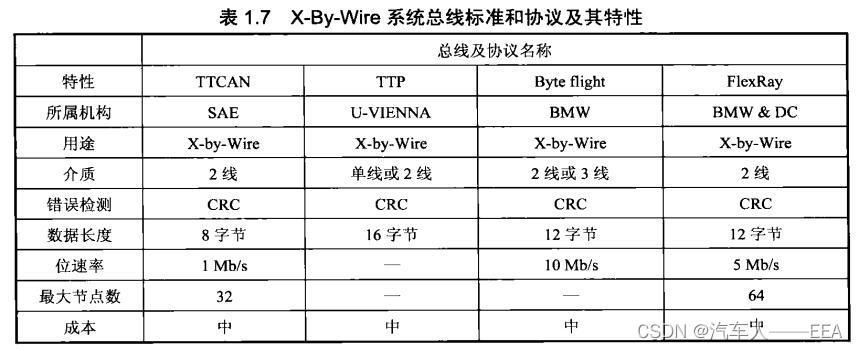 用于X-by-Wire系统的网络协议如TTP,FlexRay。