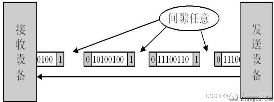 2)异步通信:(UART、CAN等属于串行异步通信)