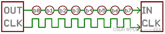 将时间划分为等间隔的小段,每个小段代表一个比特。每个小段时间又分为两半,前半个时间段表示输出比特值的反码,后半段表示传输比特值本身。