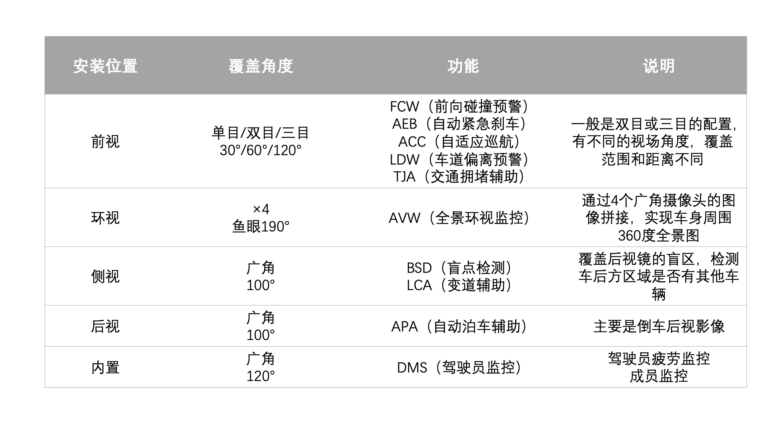 表1: 车载摄像头的分类和功能
