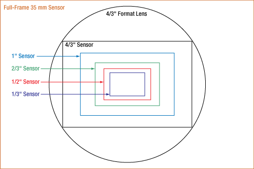 图2:感光芯片的靶面尺寸示意图,越大的靶面尺寸表示进光量越多,一般车载CMOS的靶面尺寸1/3.5’’到1/1.7’’