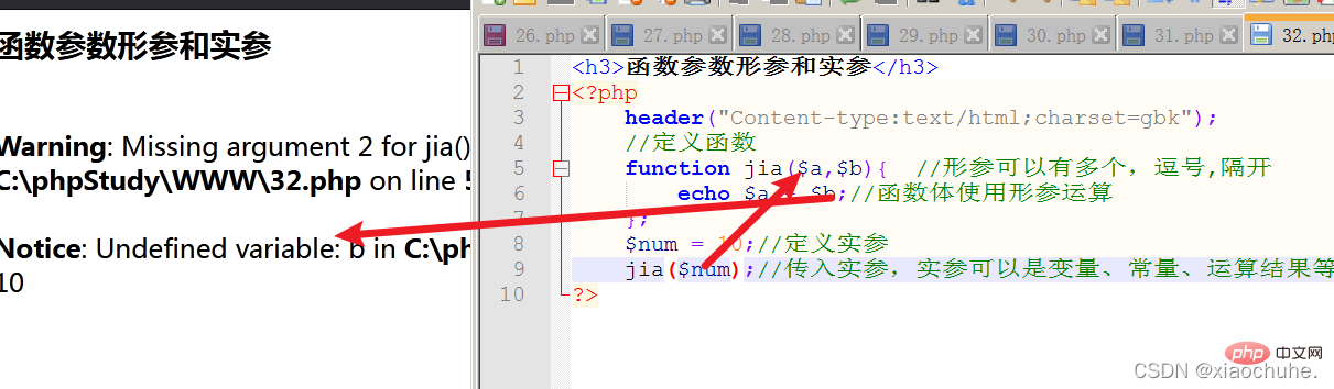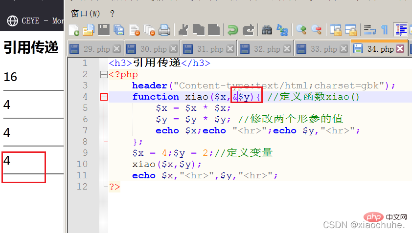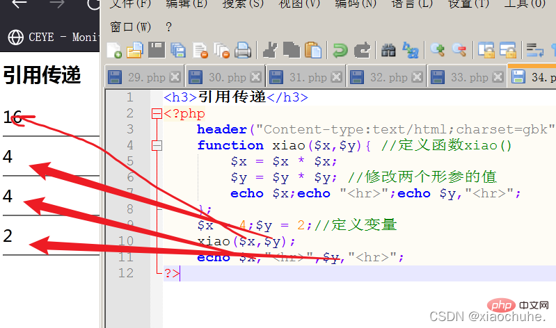 function xiao($x,&$y){ //定义函数xiao()